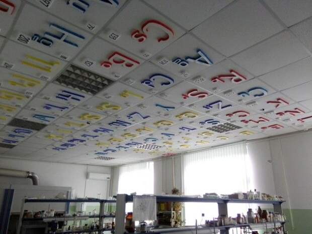 Таблица Менделеева в химической лаборатории. Тот случай, когда знания и правда можно взять с потолка