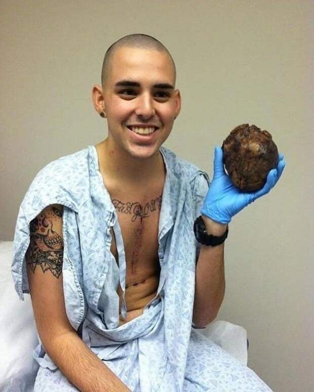 После успешной операции по пересадке сердца пациент держит в руках свое старое, больное сердце