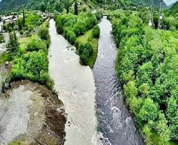 В Восточной Грузии в регионе Мцхета-Мтианети у поселка Пасанаури есть невероятное место, которое привлекает тысячи туристов. Это место слияния двух потоков воды — рек Белая Арагви и Черная Арагви, окрашенных в соответствующие цвета.