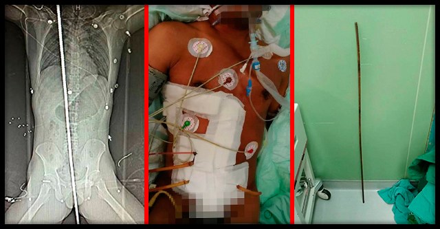 Во время операции, при которой мужчина потерял 0,5 литра крови, врачи удалили поврежденные ткани из легких и печени, после чего успешно изъяли металлический стержень. Сейчас пациент находится в отделении интенсивной терапии для дальнейшего наблюдения.