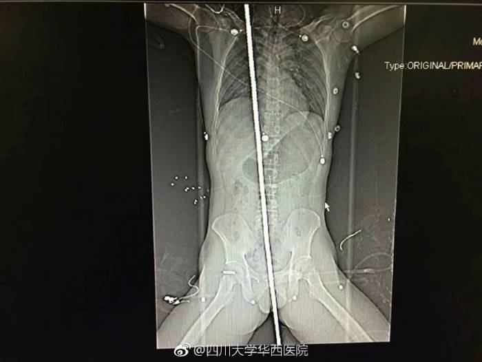 «Арматура пронзила пространство между его мочевым пузырем и кишечником. К моему удивлению, стержень не повредил каких-либо крупных артерий его живота», — добавил доктор Ма. Рентген показал, что прут пробил диафрагму мужчины и человека и прошел с правой стороны его перикардиального мешка. Другой врач сказал, что пациент перенес незначительный пневмоторакс, поскольку стержень повредил правое легкое.