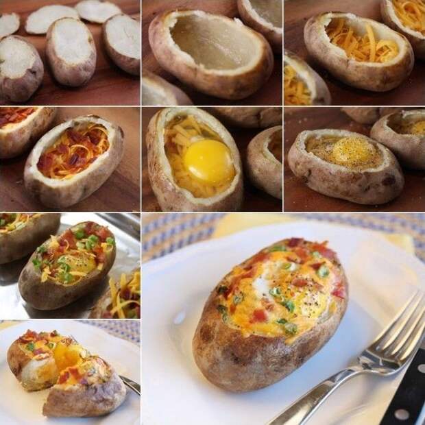 7. Запеченный картофель с яйцом, сыром и овощами.