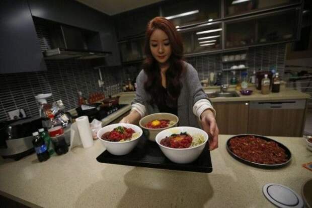 Этим Дива занимается ежедневно по 4-6 часов. Секрет ее популярности и простой, и странный: южнокорейцы не любят есть в одиночестве, а эта симпатичная гурманка любому составит компанию.