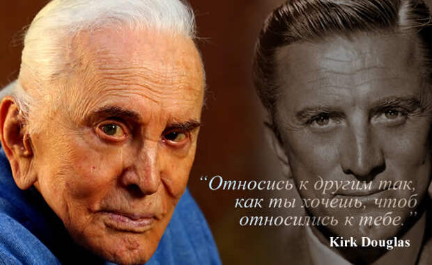 Секреты долголетия Кирка ДугласаКогда дела становятся плохи, всегда помни: может быть еще хуже. Никогда, никогда не сдавайся, не опускай руки. Работай — над своей речью, своим телом, своей жизнью. Никогда не теряй чувство юмора. Смейся над собой, смейся вместе с другими. Гони депрессию, лучше думай о том, как помочь другим. Не стыдись своих недугов и недостатков — они есть у каждого. Подумай о том, как их преодолеть. Относись к другим так, как ты хочешь, чтоб относились к тебе. Не думай о том, что ты уже всего достиг. Выбери следующую цель и иди дальше. Не каждому даны сила духа и воля, но даже маленькая победа укрепит тебя на пути к лучшему. Молись, но не о том, чтобы Бог излечил тебя, а о том, чтоб он научил тебя, как помочь себе самому. Не замыкайся в себе. Принимай помощь и помогай сам.