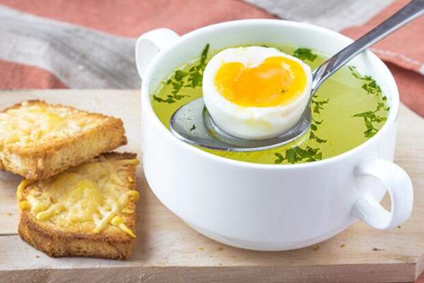 Умные люди варят бульон впрок, замораживают и держат в морозилке. Но умные люди и не бухают столько – где вы видели предусмотрительных алкоголиков? Поэтому придется делать все с начала: куриные спинки или остовы кинуть в большую кастрюлю с водой, вскипятить, снять пену, кинуть соль и перец горошком, варить полчаса на медленном огне, думая в это время о бренности всего сущего . Лечебные свойства «еврейского пенициллина» невозможно переоценить. Бульон помогает при простуде, гриппе, гастрите — и похмелье, разумеется. Подавать его надо с зеленью и яйцом, причем яйцо в данном случае тоже лучше не доварить.