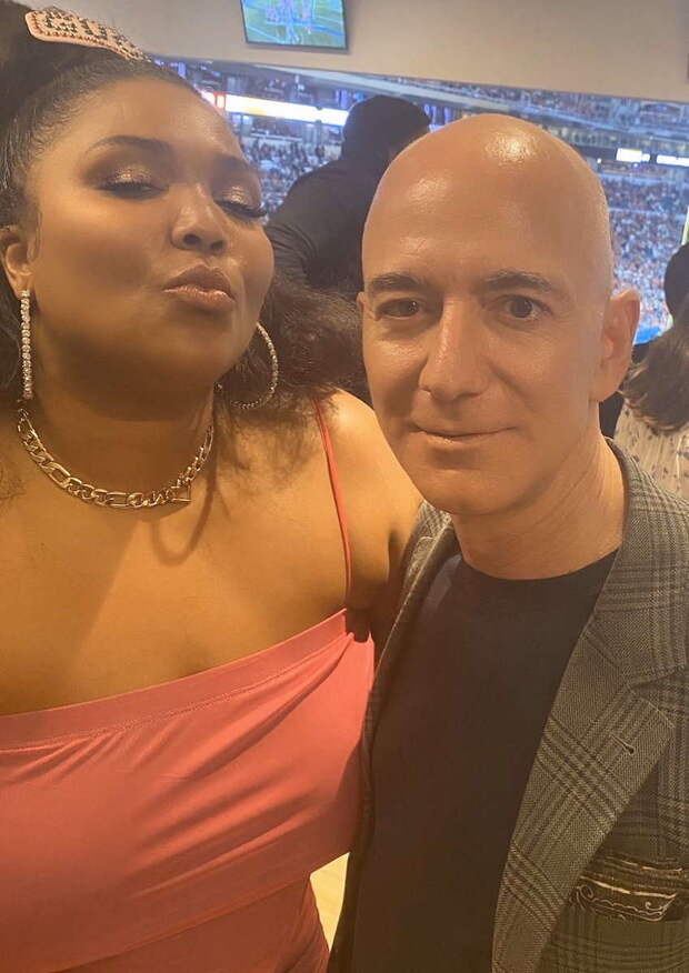 Оригинал Когда я вижу, как Джефф Безос обнимает Лиззо, мне хочется схватиться за гильотину.А ещё пользователей смутил внешний вид владельца Amazon.