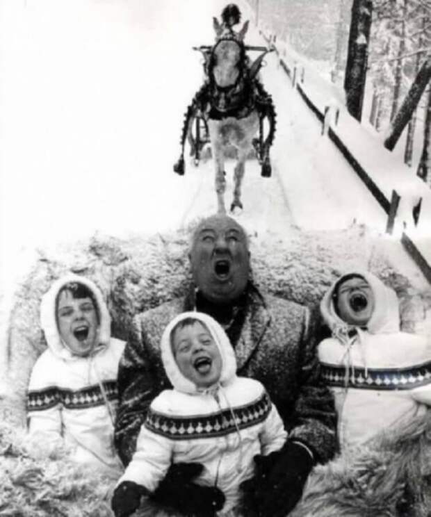 6. Альфред Хичкок играет с внуками 1960 год