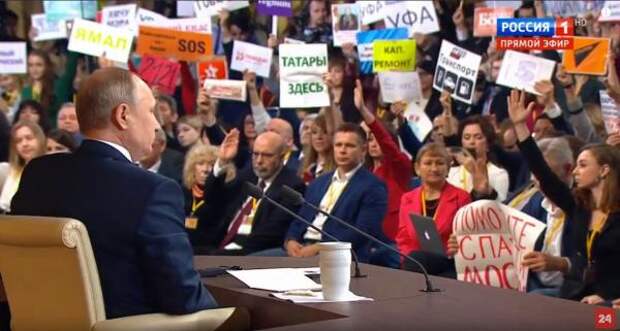 Очевидно, что задать вопросы Путину сможет далеко не каждый, поэтому в ход пошли все средства для привлечения внимания президента и его пресс-секретаря Дмитрия Пескова.