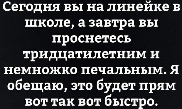 Любимый день всех родителей на свете, особенно по мере того, как ребенок подрастает. Ура-ура, теперь чадо полдня под присмотром других людей и при деле, полезным занимается, гранит науки грызет! Мнение самих учащихся благоразумно не спрашивают, оно и так очевидно. И зачем демагогию разводить? Лучше радоваться и веселиться, что дети снова идут в школу!