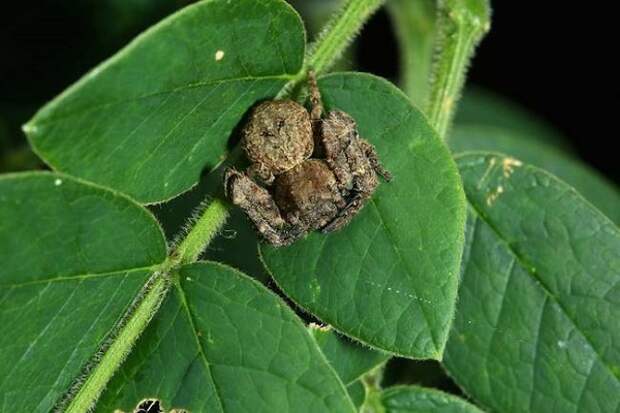 11. Паук Calaenea. Этот паук маскируется под птичий помет, ведь никто же не съест какашку, которая прилипла к листику? Пока еще ученые не опубликовали полный отчет, однако уже пришли к выводу, что это - самородок среди паукообразных. Найден он был в индийском заповеднике для тигров.