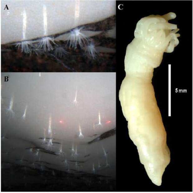 2. Актиния Edwardsiella Andrillae. Новый вид анемон был обнаружен подо льдами арктических морей, когда группа исследователей тестировала нового робота. Эти актинии как бы растут из льда, болтая щупальцами в холодной воде - уникальный вид.